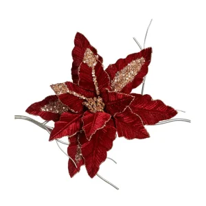 Bloem op Clip Glitter Kerst Bordeaux Rood 34 cm