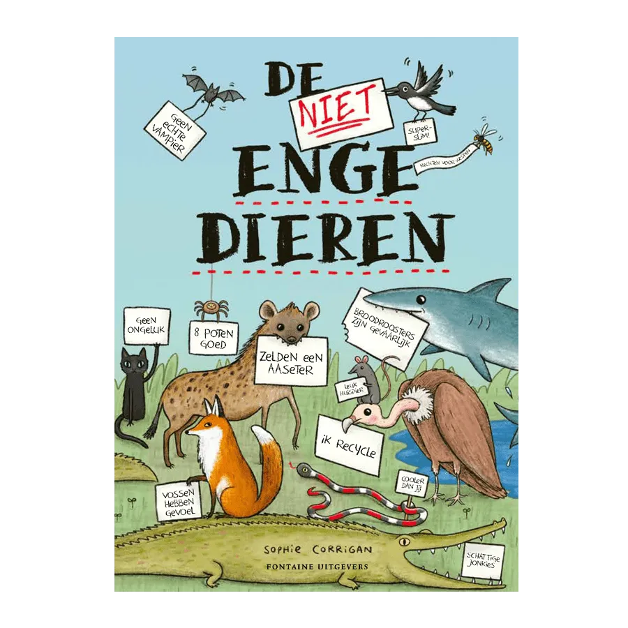 Dit boek is een dringende boodschap van alle dieren die altijd op de laatste plaats zijn gekomen. Ze pikken het niet meer! Altijd hebben ze maar moeten horen dat ze eng en lelijk en griezelig en jakkie zijn. Maar dat is niet zo. Het is tijd om het échte verhaal over deze dieren te vertellen. Spinnen zouden bijvoorbeeld ‘s nachts in je mond kruipen, haaien DE HELE TIJ D erop uit zijn jou op te eten en hyena’s vreselijk dom. Fake news! Juist deze dieren hebben (net als jij) vreselijk leuke, slimme en mooie eigenschappen. Geloof niet alle roddels. Dit boek laat je alle fabels en spookverhalen zien, en vertelt je vervolgens de waarheid over deze (niet) enge dieren.