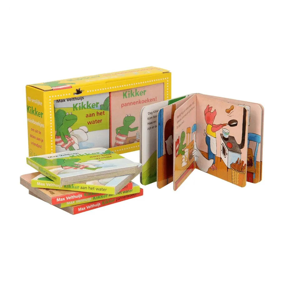 Tien vrolijke kartonboekjes om uit te delen (2×5 boekjes met hetzelfde verhaal). Ideaal om te trakteren op een feestje, op school of de crèche.