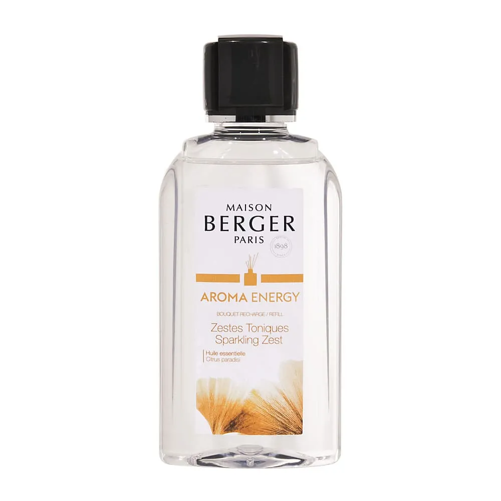 Lampe Berger Aroma Energy Sparkling Zest – Zestes Toniques is een sprankelende en frisse navulling voor je Maison Berger geurstokjes.  verrijkt met essentiële olie van grapefruit. Deze geur geeft je nieuwe energie en zorgt voor positieve gedachten. De combinatie van verschillende citrusvruchten, rozen en perzik maakt de Lampe Berger Aroma Energy een frisse en fruitige navulling voor je Maison Berger geurstokjes.